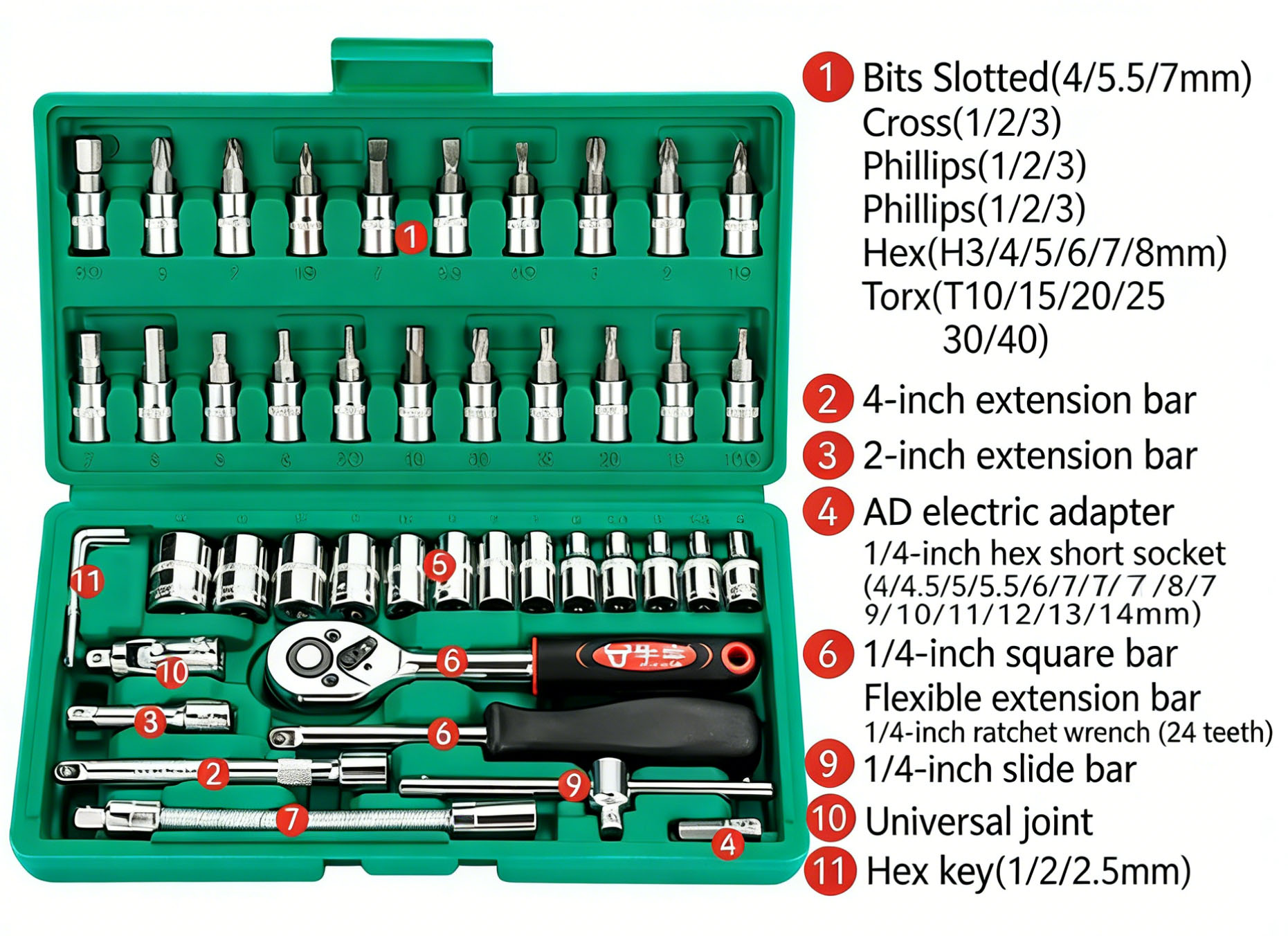 46 PCs Set 24 tooth Cr-V Steel